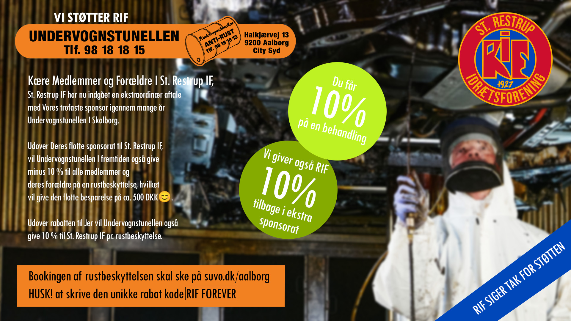 St. Restrup IF – i daglig tale RIF – har mange kasketter på. Vi er både en stor breddeklub med mange tilbud inden for Badminton, Fodbold, Floorball, Gymnastik, Håndbold og Skytter, og så er vi et kultur- og fritidscenter for hele vores lokalområde fra Drastrup i øst over Frejlev og St. Restrup til Sønderholm i vest og fra Tostrup i syd og Nørholm i nord. Vi holder til i Frejlevhallen i Frejlev få kilometer uden for Aalborg. Vi er en velfunderet idrætsforening, som blev etableret i 1927, og som har mange spændende planer for fremtiden.